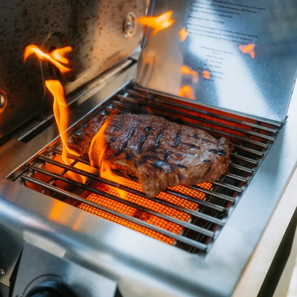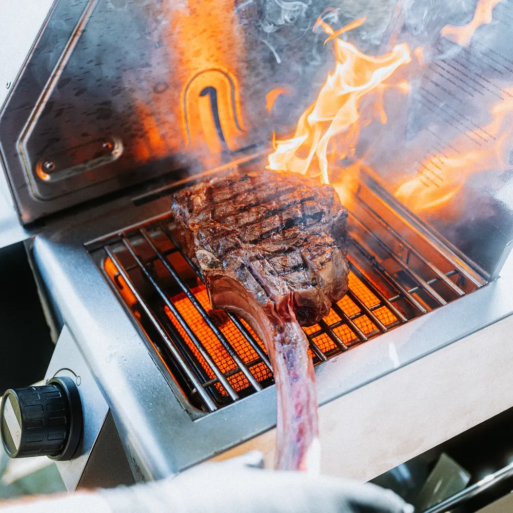 Erlebe die Stärke eines der kraftvollsten Gasgrills mit 20 kW Hauptbrennern, 4 kW Seitenbrenner (800°C), und Temperaturen über 500°C am Grillrost. In fünf Minuten auf 300°C.