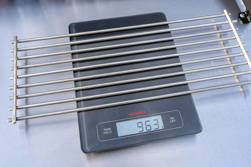 Das 6mm Edelstahlrost bringt genau 963 Gramm auf die Waage (ein Rostsegment).
