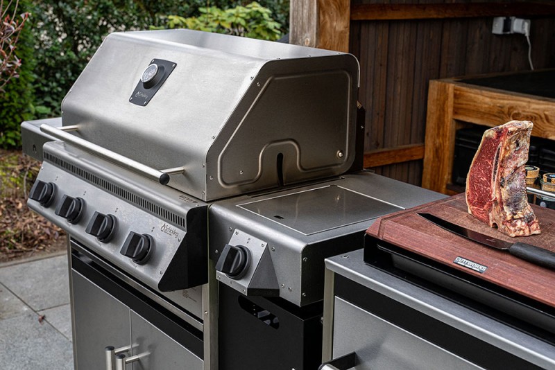 Wir können mit Fug und Recht behaupten, wer jemals ein Steak auf unserer „Powerzone“ gegrillt hat, möchte zukünftig nicht mehr darauf verzichten. Die „800° Powerzone“ ist ein im Seitentisch unserer Gasgrills Henry L und Hermann XL integrierter Infrarotbrenner, welcher innerhalb weniger Sekunden, Steaks eine durchgehende krosse Kruste verleiht. Dank der modularen Bauweise unserer Grills, kann der Burner jederzeit in einen bestehenden Henry L oder seinen großen Bruder, den Hermann XL, eingebaut werden und lässt diese zu echten Steak-Maschinen werden.