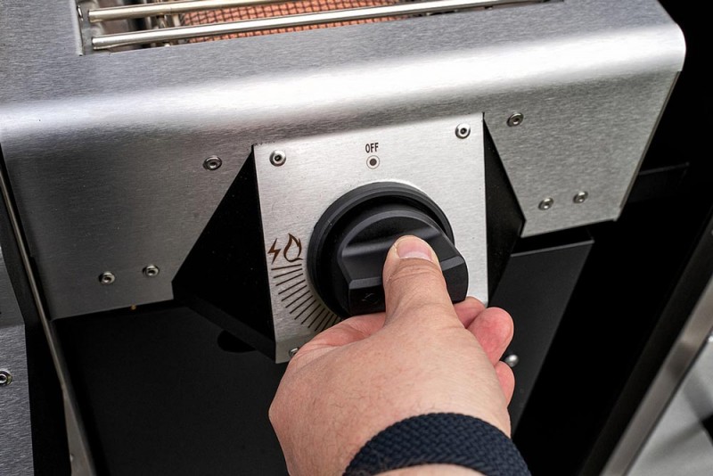 Im Folgenden werden wir euch anhand eines kapitalen Steaks zeigen, wie einfach es ist, dass perfekte Steak mit der 800° Powerzone des Walter XL - Deluxe zuzubereiten. Das ca. 1,2 kg schwere Steak wurde ca. 2 Stunden vor der Zubereitung aus dem Kühlschrank entnommen. Während dieser Zeit konnte das Fleisch Zimmertemperatur annehmen und ist aus diesem Grund im Kern nicht mehr so kalt. Zum Zünden der Powerzone wird der große schwarze Regler zur Gaszufuhr um ca. eine Viertel Umdrehung nach links gedreht. Nun sollte das Gas hörbar strömen, sodass durch eine weitere kurze Linksdrehung des Reglers der Piezozünder die Flamme entfachen kann.