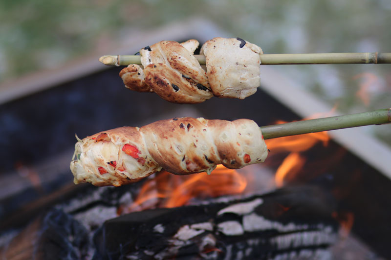 bis er goldbraun und knusprig ist. Drehe den Stock regelmäßig, damit das Feuer das Brot gleichmäßig röstet.